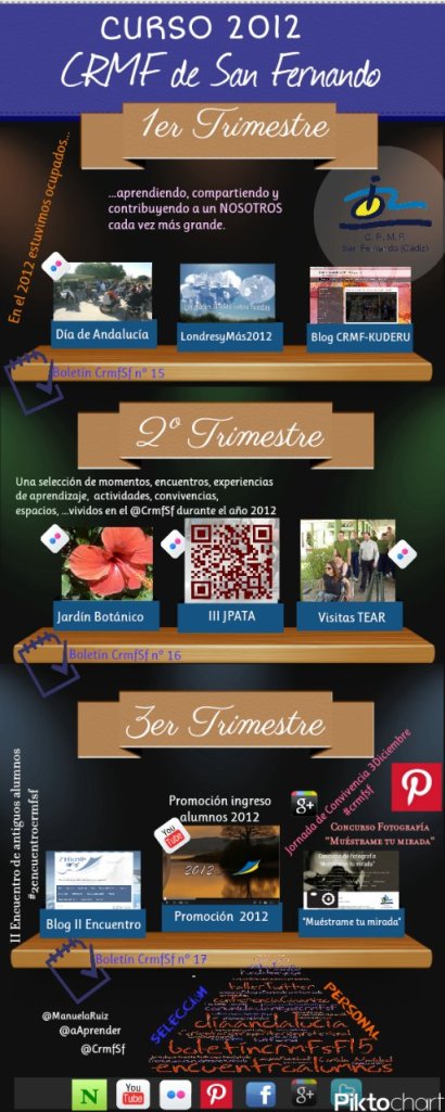 Mostramos aquí los eventos más relevantes del curso escolar 2012 desarrollados en el #CrmfSf, con el concurso de los profesionales y alumnos del #SocpSf.