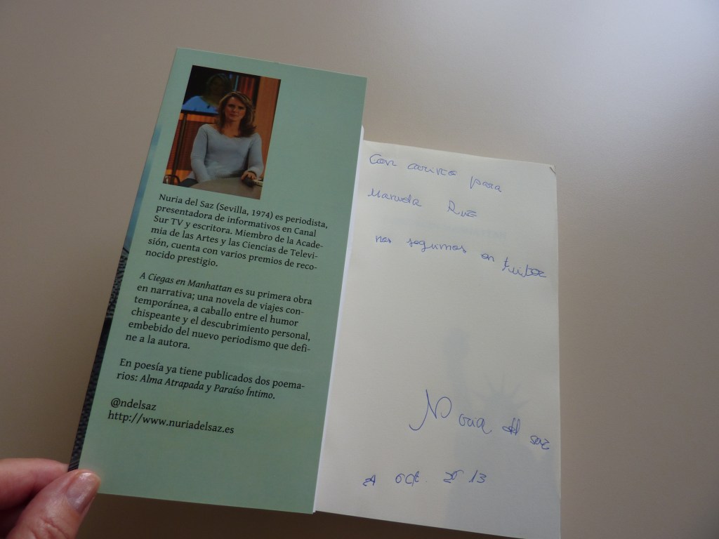 Nuestra sección Entusiamo 2.0 está de enhorabuena al contar con el testimonio excepcional de una gran entusiasta de las tecnologías, en parte por pasión y en parte por necesidad. Hoy conversamos con Nuria del Sanz, presentadora invidente de Canal Sur TV, a la que su discapacidad visual no le ha impedido conciliar sus grandes logros profesionales, familiares y personales, como nos explicó en la Jornadas sobre “Discapacidad y Medios de Comunicación”, celebradas en nuestro Centro el 24 de Octubre de 2013 #DiscapacidadyMMCC , donde tuve la suerte de conocerla, escucharla y recibir una afectuosa dedicatoria de su libro «A ciegas en Manhattan»