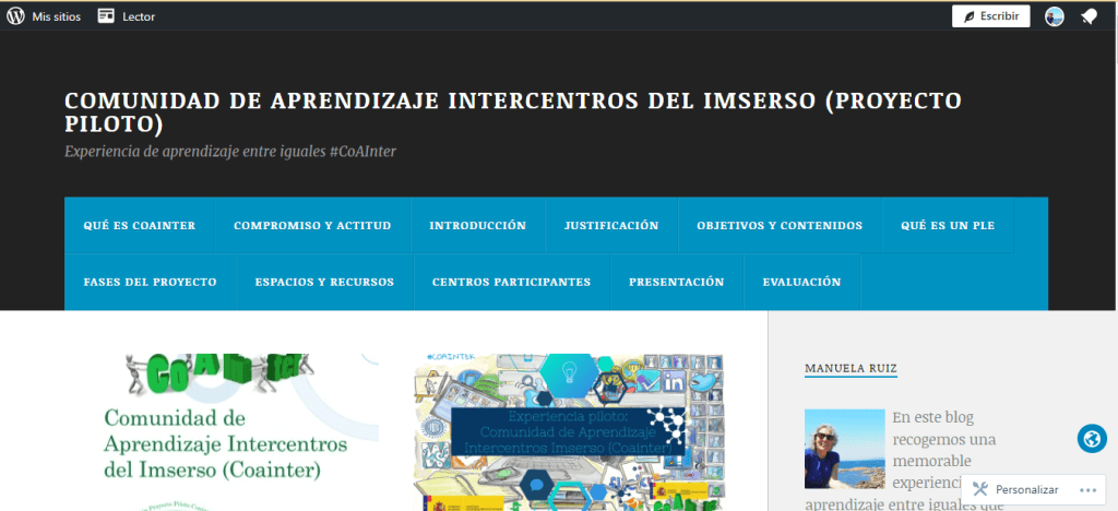 La Comunidad de Aprendizaje #CoAInter es una experiencia piloto que se llevó a cabo en 2016, dentro del Plan de Calidad del Imserso. Se trata de una iniciativa dirigida a los profesionales de los equipos multiprofesionales de los diferentes Centros del Imserso, ubicados en la geografía española. Los participantes reunidos en un espacio común, en línea y presencialmente durante una jornada, tuvieron la oportunidad de aprender colaborativamente con sus iguales, abordando temas relacionados con el uso de la tecnología orientada al desarrollo profesional y personal.