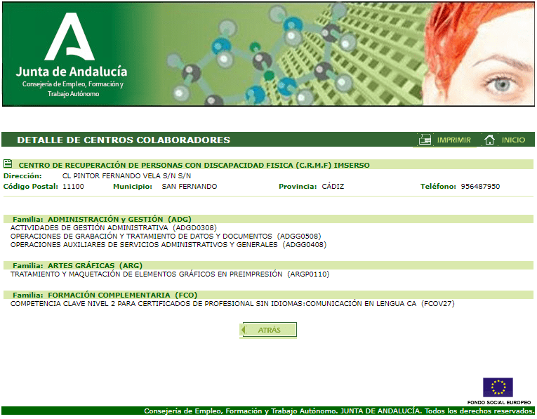 ✅ Acreditación de la Junta de Andalucía para impartir en el CRMF-Imserso de San Fernando, dos nuevas especialidades formativas conducentes a la obtención de certificados de profesionalidad y la posibilidad de impartir competencias clave para acceso a los certificados de profesionalidad de nivel II
