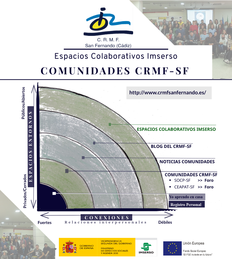 😕 Siento tristeza al comprobar que el intenso trabajo y esfuerzo realizado para avanzar en la creación de un espacio de apoyo al diálogo e intercambio de conocimiento, de usuarios y profesionales del CRMF-Imserso de San Fenando, esté invisibilizado y sin acceso al menos desde marzo de 2023. Las Comunidades y Noticias del CRMF-SF siguen cerradas al momento actual, agosto de 2023.